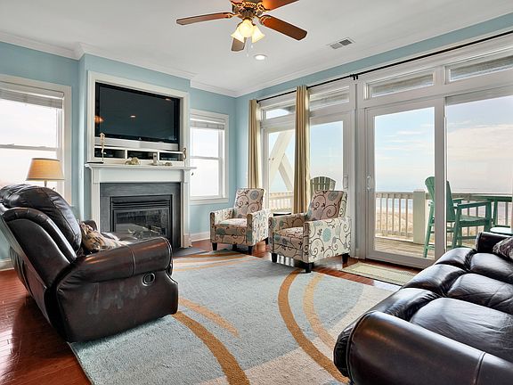 Ocean front duplex side with 5 bedrooms, elevator and gorgeous ocean views. Extremely well maintained with new Hardie board siding, sliders and windows, carpet and paint, patio for grilling, elevator renovation and more. More specifics can be requested. The layout for this condo unit maximizes the views from several angles and in many different rooms so that you can enjoy sunrise and sunset from the living room, kitchen and bedrooms. Nice poly furniture on the decks and decorated with style on the interior. It is no wonder that this is a very popular vacation rental grossing over $70,000 in 2019. Sunlit dining room, dry bar, wine fridge, LR fireplace, built in bookcases, lots of storage inside and out, outdoor shower are a few more assets which you will enjoy. Make this your primary, secondary and/or take advantage of an income opportunity until you decide you want to retire here. This is located on a quiet street that is one way and with limited traffic. Easy walk, bike, and/or golf cart to a variety of activities.