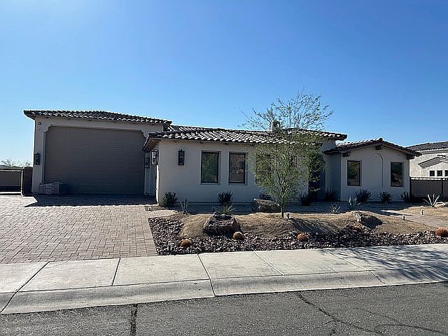 Located in Havasu Foothills Estates this single level home sits on a generous corner lot. This newer residence offers modern elegance with simplicity. It has an open floor plan, with a 15-foot ceiling. A well-appointed wet bar, ice maker, and wine fridge. The kitchen offers an oversized island paired with quartz and leathered granite countertop, built-in dual refrigerators and commercial gas range (500 gal. LPG under ground tank), along with a walk-in butler's pantry off the kitchen and dining. Networked (tv, data, alarm and camera) The backyard encompasses not only a feeling of seclusion but gorgeous views, pool, spa, fire pit, night lighting (front yard and back). The DOUBLE RV garage (24’ x 75’) with added custom cabinetry throughout both epoxy floor garages. There are three mini splits for climate control and a half bath for the garage.