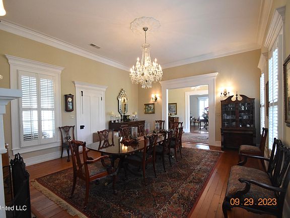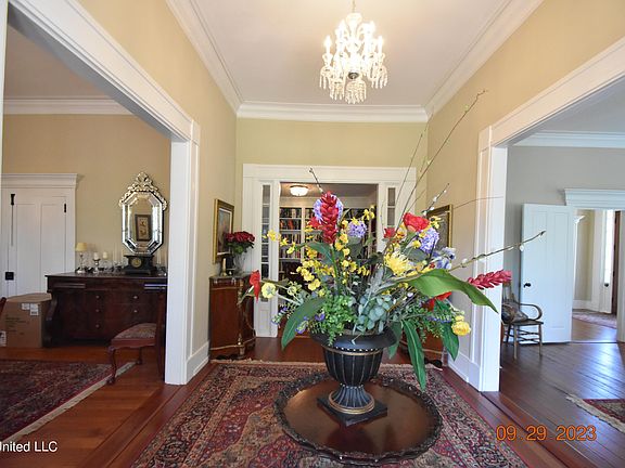 Welcome to this stunning Greek Revival home, listed on the National Register of Historic Places, presides majestically atop a hill in a private setting on over 3.4 acres with flowering landscaping, massive oak and magnolia trees, completely fenced in the historic district of Carrollton MS. The Oaks is perfect for a dreamy home, or could realize your dreams of a bed and breakfast and/or venue. The gorgeous home which was meticulously renovated in 2014 boasts exquisite architectural details, a gourmet kitchen open to beautiful family room and informal dining area, elegant formal dining, parlor, breathtaking chandeliers, a fabulous screen porch and numerous other exceptional amenities offering an unparalleled living experience that is truly unforgettable. Indulge in this home's many luxurious amenities, including an immense and tranquil primary suite with a fireplace, a deluxe spa-style bathroom. Each well-appointed and spacious bedroom has its own fireplace. The allure of this home extends beyond its interior, as the beautiful landscaping and amenities create a private oasis for relaxation and entertainment. Don't miss your chance to own this stunning masterpiece with exceptional amenities and so much more! This remarkable residence in the historic community of Carrollton, MS will allow you to embrace the charm of yesteryear while enjoying the comforts of modern living.