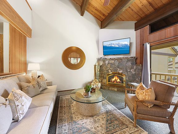 Well cared for Kingswood Village condominium with some upgrades and a good location away from the highway. There are 3 BR plus a sleeping loft and 2 BA. Bright open floor plan with a beautiful stone Fireplace Extrodinair and vaulted beam ceilings. Enjoy the convenience of this Kingswood Village condominium that is so close to so much. Sandy beaches of Lake Tahoe, hiking & biking trails, the North Tahoe Regional Park, shopping, restaurants, golf and Northstar Resort are all very close by. Amenities include pool, tennis courts, bocce ball & a boat parking lot in the summer. A Fabulous Find!!