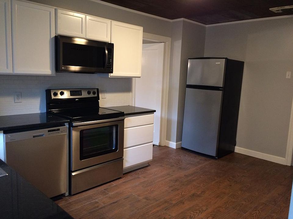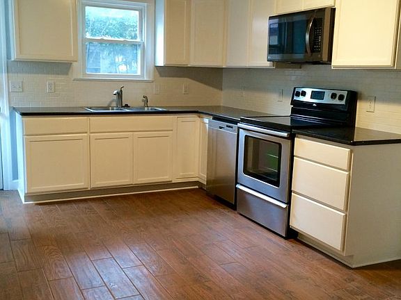 New appliancesHuge fenced yardOriginal wood floorsCeramic wood-look floorsNew front porchNatural lightTotal remodel in kitchen