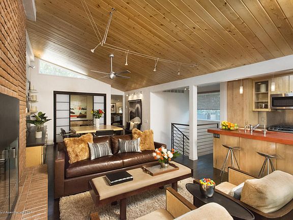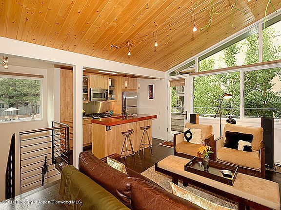 Incredible opportunity to own a impeccably remodeled 3 bedroom, 3 bathroom downtown townhouse. Features included in this end unit vaulted ceilings, AC, south facing deck with Aspen mountain views, stainless appliances and hardwood floors. Remodeled in 2010 by renowned architects Rowland & Broughton, there is not a square inch that doesn't have a use within this open, modern & cozy 2-level townhome. This unit belongs to a small complex that boasts low HOA's. Additionally included is an office, media/play room, and one parking space... just blocks from the gondola.