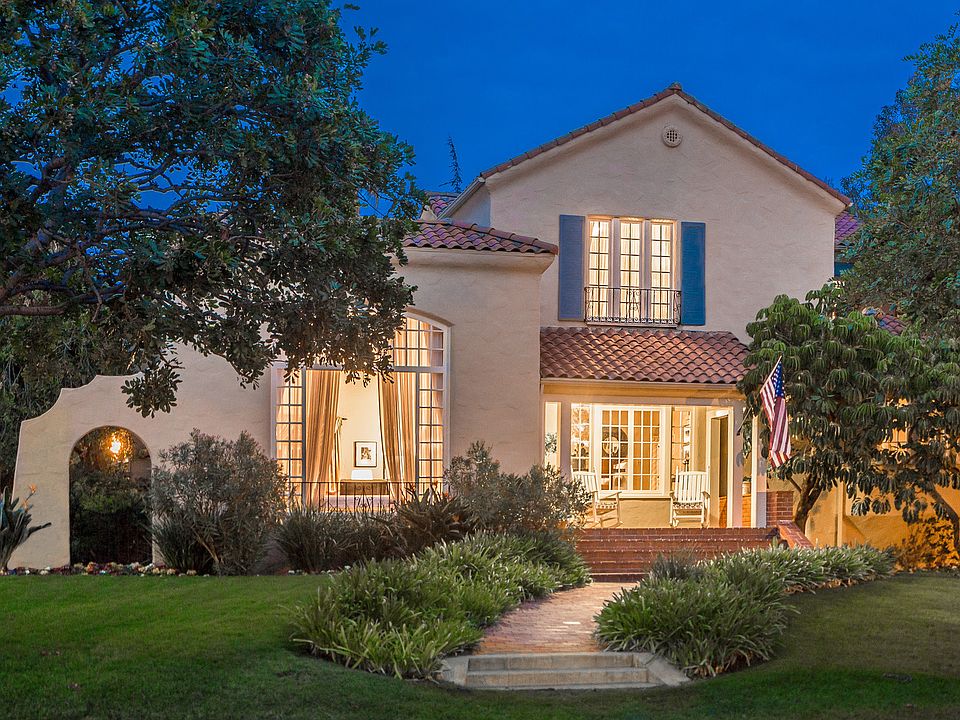 Impeccable Mediterranean located on picturesque corner lot in The Rossmoyne Historic District, features guest house, pool, architectural details such as unique wrought iron, French drs &windows, hardwd flrs, detailed fresco wk, arches, original turned columns, & more. House is measured 2669 sf w/3 bdrms up, 4th bdrm or den down + 2 ba; permitted gst hse is measured 405 sf, 1 bdrm+1 ba, plumbed for kitchen. 2 spaces in basement, 1 is 10x10 for wine cellar space. Grand living rm w/tall, paned front window, a barrel ceiling, dramatic fplc, & French drs to patio & pool. Elegant formal dining rm, circular breakfast rm w/ turret ceiling & walls of windows + original Magnesite staircase w/ detailing all add to the beauty of this hm. Each bdrm has unique features: Master has access to sun deck w/tree top & city views, 2nd bdrm has French drs leading to veranda, 3rd bdrm overlooks a turret shaped red tile roof. Patio, sparkling pool create magical outdoor living for this classic property.