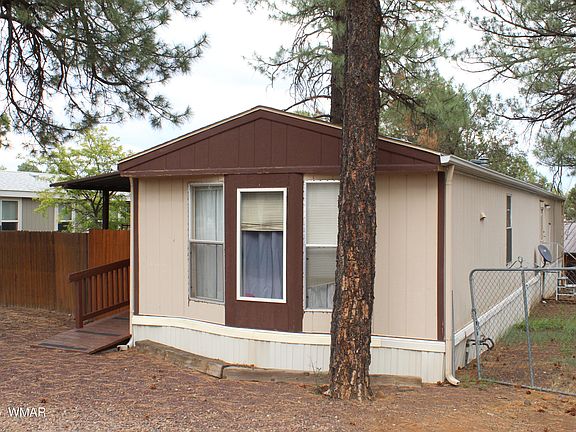 Come take a look ath this home in the White Mountain Mobile Village in the heart of Show LOw. This is home is a 2-bedroom 2- bath , 1100 square home with lots of space and comes completely furnished. this home has been well taken care of and appears in good condition. This home is eligible to assume the park space for $400.00 per month and buyer would need to be approved by the park management. Water, sewer and trash is included in the space rent. It is possible to move this home to your own lot as the tongue and axels are under the home which still needs to be confirmed. Exterior storage shed itransfers with the manufactured home. Come take a look .