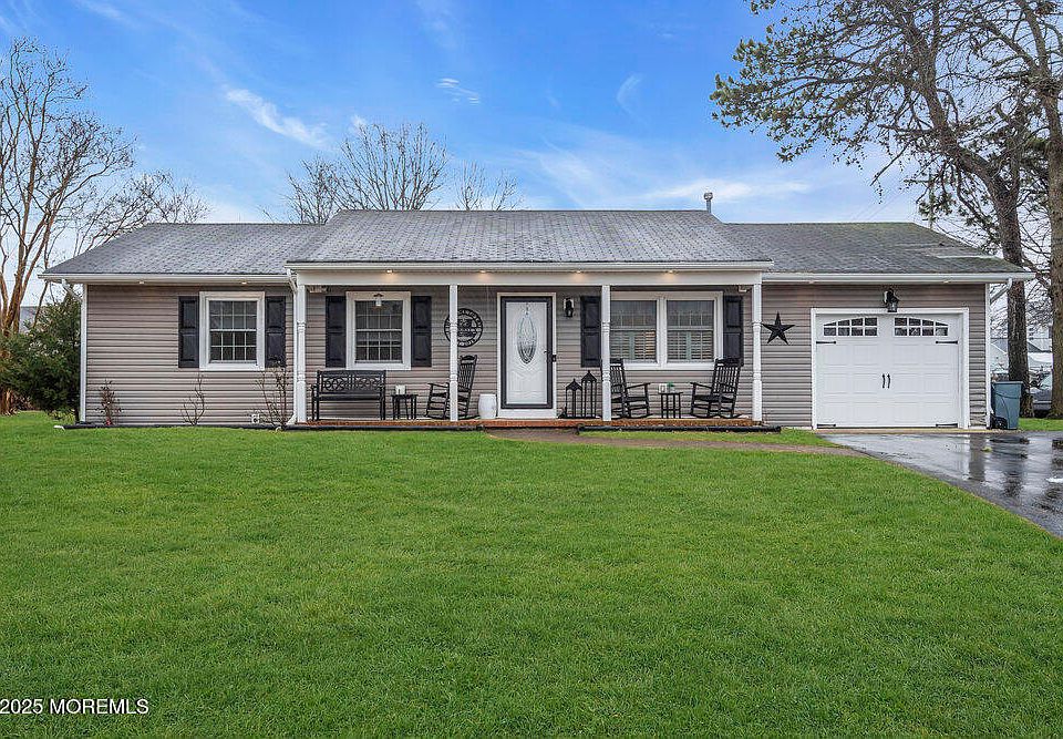 This beautifully updated 3-bedroom, 2-full-bath ranch is move-in ready and packed with stylish upgrades. New vinyl flooring flows throughout the home, complemented by fresh paint in every room. The kitchen is a standout, featuring stainless steel appliances, granite counter tops, crown molding, and ample cabinet space. Hunter Douglas window treatments in the kitchen and living room, along with Blinds To Go treatments in all bedrooms and the primary bath, provide both elegance and functionality. Both bathrooms have been tastefully renovated, adding to the home's modern appeal. The well-defined living spaces create a cozy and inviting atmosphere. French doors lead to a freshly painted deck and a spacious backyard, perfect for entertaining or relaxing. Conveniently located near parks, local amenities, and the waterfront, this home is a must-see.