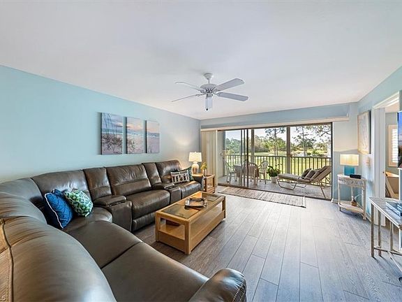 Golf Club membership is included with this 3 Bedroom, 2 Bath, Pet-Friendly, 2nd floor - End Unit Condo in Beautiful Glen Eagle Golf and Country Club. Fresh paint and LVP flooring and newer stainless steel kitchen appliances are recent updates. Step outside to the neighborhood pool with pickleball close by! Plantation shutters are on all the bright windows. The screened lanai offers a wonderful golf course view. Hurricane shutter protection on the lanai. A transferrable Home-Tech Warranty for appliances & AC is included. Convenient in-unit laundry room is a plus. The Club offers you, as a golf member/owner a par-70, 18-hole championship golf course, fitness center, bocce courts, clubhouse with a billiard room, card rooms, meeting rooms and activities center. The Restaurant consists of a dining room, a private dining room, and a full service bar and lounge area, The 19th Hole. Glen Eagle Golf and Country Club is a private, gated community with 1234 units comprised of 924 golf memberships and 310 social memberships. Glenmoor Greens I, as part of Glen Eagle Golf and Country Club, is located with convenient access to I-75 and also to downtown Naples and south to Marco Island.