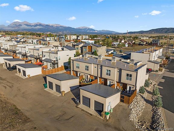 Spacious 2 bed / 2.5 bath Angelview condo in Salida — vacant, professionally cleaned, and move-in ready! Built in 2017, this is a rare chance to own in the sub-$500K range within walking distance to downtown restaurants, riverfront, and trailheads. Features include an open-concept layout with bar seating, granite counters, and modern finishes throughout. The light-filled primary suite offers a walk-in closet and full bath. The second bedrom features it's own en-suite bath. Enjoy a fenced red-stone patio with sunny southern exposure, plus a detached 1-car garage and deeded parking space. Central HVAC, low-maintenance design, and water included in HOA dues help keep costs down. No punch list required — just step in and start living the Salida lifestyle.