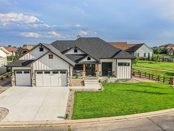 This newly built custom ranch is nestled on a corner lot with open space and a green belt surrounding it on all sides but one. The centerpiece of this modern mountain ranch home is its massive, wrap-around custom kitchen. This main space boasts 12 ft ceilings, white oak hardwood floors, and constant views of your very own custom stone transparent mezzo fireplace. The kitchen is designed with a quartz waterfall island, floor-to-ceiling cabinets with soft close pull-out pantries, a custom built-in touchless hood vent, a true full-size double Oven, and Bosch appliances. The stand-alone Bosch cooktop sits between 35’ of countertop space in this kitchen, perfect for entertaining and breaking out all the ingredients for those in-depth meal preps. Mountain modern is the feel you experience all throughout the cozy chandelier-lit family room, contrasted by the moody yet bright front office with direct patio access. The master suite has its own dedicated five-piece ensuite bathroom with Italian Limestone tile floors, a stand-alone luxury bathtub, and an enclosed shower with 5 function massage showerhead. Pass through to your dream closet with full body mirrors, and a seated makeup vanity. Head downstairs to reveal a massive common area and ceiling heights that immediately draw your eyes up. No expense was spared on this truly special build, authentic rough cedar beams line the front and rear covered patios where you can take in the relaxing scenery of the rocky mountains. Security doorbells, electronic deadbolts and quiet belt-driven garage door openers overseeing your 3car garage all feature security cameras for peace of mind. A tankless water heater is included along with an electrical sub panel in the backyard to allow for easy installation of a hot tub. Come turn the key and open the door to the possibilities this home holds on a very rare corner lot in Serratoga Falls.