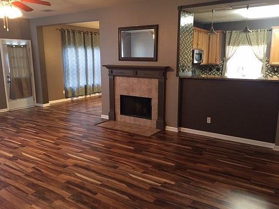 In Sterling Oaks subdivision. Open concept. Kitchen has granite counter tops, walk-in pantry, gas range, fridge is included, breakfast room and separate dining. Gas fireplace. New wood laminate flooring with tile in bathrooms. Fenced in back yard, with small shed. Two car garage. 1850.00 per month for one year lease, 1750.00 for 2 years or more. Tenant responsible for all utilities