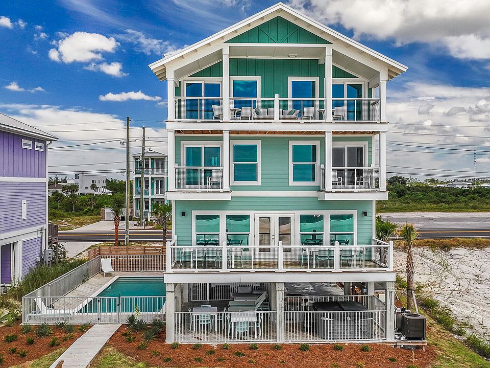 BEACHFRONT SANCTUARY!! This coastal retreat is designed to elevate every moment of Gulf-front living. Nestled directly on the water, this 6-bedroom, 6-bath residence is perfectly suited for multi-family gatherings, vacations with friends, or as a bold investment in luxury real estate. From the moment you arrive, the airy, open layout draws you in with panoramic Gulf views that fill the home with light & inspiration. The chef's kitchen, complete with modern appliances & a generous island, sets the stage for effortless entertaining & memorable meals with family & friends. Each floor is thoughtfully designed for privacy & comfort. The main living level features a seamless flow between the living/dining areas that open to expansive decks—ideal for sipping morning coffee or evening cocktails as the waves roll in. Upstairs, multiple bedrooms offer private baths, direct balcony access & shared outdoor seating perfect for watching breathtaking sunsets. On the ground level, your private oasis awaits with a heated pool elevated above the dunes that invites you to relax beneath the stars. A private boardwalk leads you directly to the sugar-white sands of Mexico Beach, where adventure & serenity are always just steps away. An elevator services every floor, providing convenience & ease throughout the home. Life in Mexico Beach is refreshingly laid-back, where neighbors become friends & every day feels like summer. Cruise the quiet streets by golf cart, stroll to local shops & eateries or spend evenings on the beach watching dazzling sunsets paint the sky. Here, the pace slows down just enough for you to savor the simple joys of coastal living. Whether it's sunrise over the Gulf, paddleboard trips along the shore, dinner parties on the deck, or late-night swims under the stars, this property is more than a home—it's an invitation to live like every day is a vacation. Call for your private tour & LIVE THE BEACH LIFE!