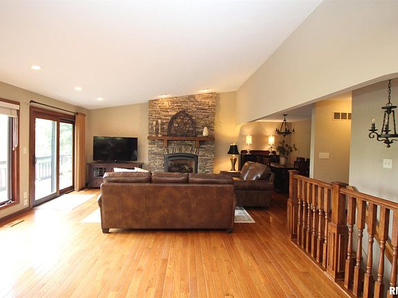 Heres your chance to live in the desirable White Oak Lake community! Spectacular ranch was custom built by Noah Noah Herman. Numerous updates and open floorplan! Fireplaced great room open to cherry kitchen with island breakfast bar, silestone countertops & tile backsplash. Versatile main floor den could be converted into a laundry room. Main bathroom remodeled 2006. Master suite includes hardwood floor, 10x6 walk-in closet and private bathroom with dual sinks. Finished walkout lower level offers family room, rec room with built-in bar & exercise room. 2 large storage rooms and a 20x17 workshop. Spacious 3 stall attached garage. Gorgeous .69 acre yard with numerous perennials & mature trees! Plenty of room to add a pool if desired. Great space to entertain your family & friends on the 24x11 deck and 15x10 patio. Lake privileges include fishing, swimming & non-motor boats. Seasonal lake view. Award winning school district!