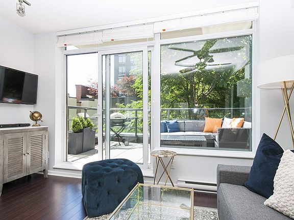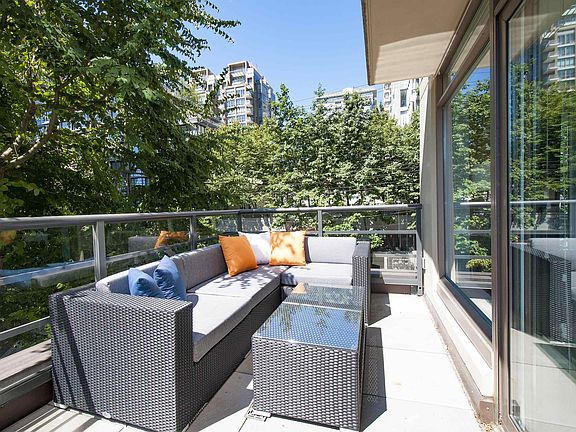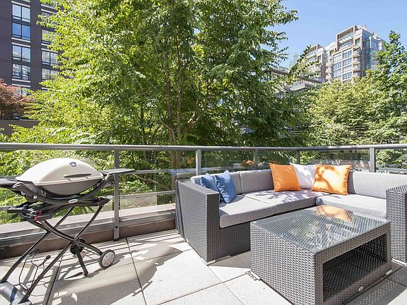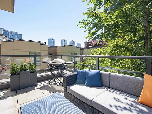 Rare, oversized 200 sf patio steals the show! Calling all patio lovers to this corner unit gem with a bonus second patio, your ultimate outdoor living space, a true extension of your home. 1 bed + Den + Solarium + Extra large storage + Parking. Tenanted at $3700/month, this is a smart investment! The Bentley offers sophisticated city living, just steps from Yaletown’s award-winning dining, boutique shops, cafés, and the Canada Line. This open-concept layout creates seamless flow, while the versatile den is ideal as an office or nursery. Enjoy outstanding building amenities including a gym, hot tub, residents’ lounge, billiards + party room. A unique opportunity to own in one of Vancouver’s most coveted neighbourhoods in an immaculate well performing, proactive building. Pets are welcome