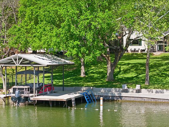 Experience the best of lakeside living at this stunning Lake Marble Falls retreat! With 3,424 square feet of beautifully remodeled space (updated in 2018), this spacious home offers 6 bedrooms, 3.5 baths, and room for everyone—comfortably sleeping up to 14 guests. The stone and stucco exterior creates striking curb appeal, while the open-concept layout inside takes full advantage of expansive lake views that stretch across the entire back of the house. Perfect for full-time living, weekend getaways, or short-term rental income, this property was designed with entertaining and relaxation in mind. The outdoor living area is a true showstopper, featuring a cozy fireplace and multiple seating areas for gathering with family and friends. A lush green lawn—maintained with a lake pump irrigation system—gently slopes down to just over 70 feet of waterfront. The private boat dock includes an electric lift, a generous deck area, and a heavy-duty dock ladder for easy access to the swim area. Surrounded by mature trees—Bradford pears, oaks, cottonwoods, and pecans in full, vibrant bloom—the entire property is enveloped in natural beauty. Located in the heart of the Hill Country in Marble Falls, you're just 50 miles from Austin and 85 miles from San Antonio, making this an ideal escape that still keeps you close to everything.