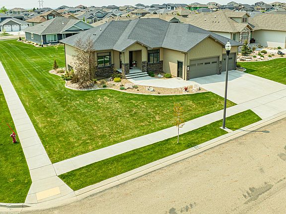 Welcome to Heritage Park! This gorgeous ranch style home has over 3900 SqFt of spacious living. There is a home office conveniently located off the foyer. The foyer then opens up to a warm and inviting coffered ceiling living room that boast an amazing stone fire place as its focal point. The spacious kitchen includes a large granite top rectangle island with custom hidden cabinets. There is a large walk-in pantry and custom made hidden spice racks conveniently placed by the cooktop to make this kitchen a chef's dream. Off the naturally lit dining room you have a gorgeous covered south facing patio with gas hook up and roll down sun screens to entertain and enjoy the evenings. The primary bedroom has an impressive on suite with his and hers walk in closets a gorgeous bathroom with custom tiled walk in shower with double shower heads double sink vanity and whirlpool tub. The main floor also has an additional bedroom with walk-in closet and full private bath that would be perfect for guests or an in-law suite. The oversized heated garage is complete with hot & cold water and floor drains and leads to a mud/laundry room and half bath as you enter the home. The lower level includes both a huge family room and a game room with large daylight windows. There is already plumbing for a gas fireplace and a wet bar. There is also a private theater room!, two additional bedrooms and a full bath complete this spacious home. Homeowners association takes care of lawn care and snow removal. So you can sit back and enjoy the outdoors on your patio or in the 5 acre park next door. Call your favorite realtor for a viewing today.