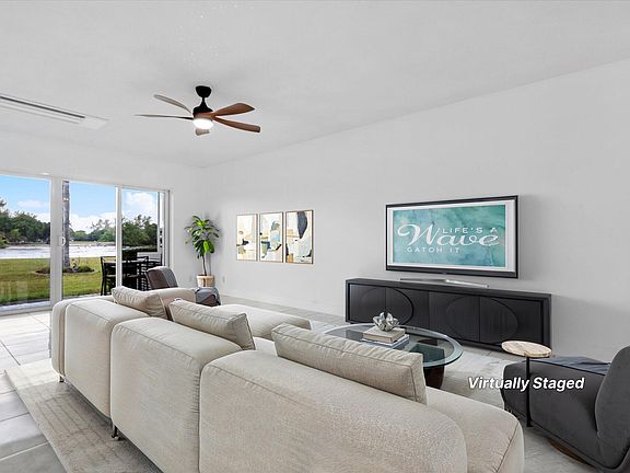 Experience serene waterfront living in this beautifully updated 55+ community residence, offering stunning Intracoastal views and vibrant boating activity right outside your patio. This immaculate unit features new hurricane-impact windows and doors, sleek 24x24 porcelain tile throughout, and a kitchen with a stylish tile backsplash. The spacious bedroom includes a walk-in closet, while the bathroom showcases a walk-in shower with custom cabinetry. Enjoy peaceful evenings on your covered patio while taking in breathtaking sunsets. Added highlights include a newer electrical panel, new two-zone high efficiency A/C mini-splits, a 4-year-old hot water heater, a storage locker, and convenient shared laundry on the same floor. Community rules include no leasing and no pets, ensuring a quiet and well-kept environment.