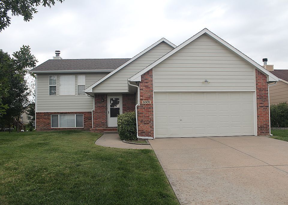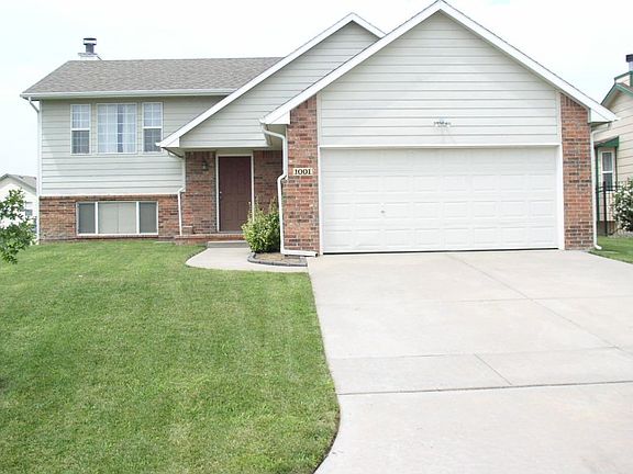 This Goddard home has approximately 2,553 square feet of living space for the growing family. Home includes 2 car garage, 4 bedrooms and 3 baths with fully appliance d kitchen, eating bar, ceiling fan(s), master bath with separate tub/shower. Finished basement with family room, 2 bedrooms and bath. Deck off dining area plus patio on lower level. Wood burning, gas starter fireplace in living room.
