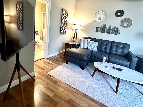 Family room - Comfy with remote controlled lamps, a 50" Smart TV; w/Hulu. Sofa converts to a Queen deluxe sleeper.