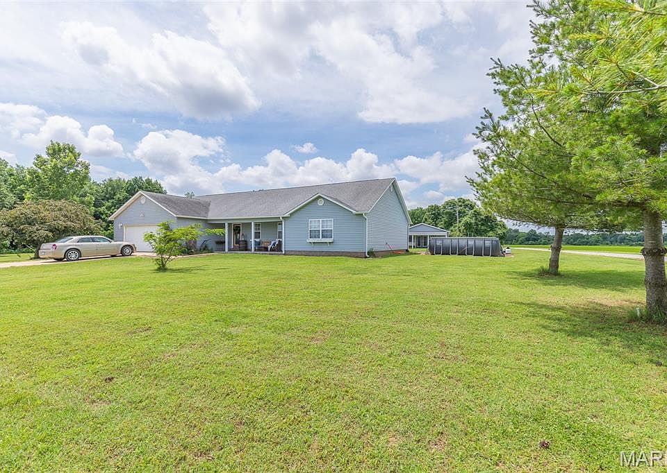 Beautiful 3-bedroom, 3-bath home situated on 19.5 +/- acres in Neeylville, MO. This property offers unmatched privacy with no neighbors in sight and a spacious, level yard. The home boasts large, airy rooms, including a formal dining room and a mudroom. The main level master suite ensures convenience and comfort, and a split bedroom floorplan. The kitchen comes fully equipped with all appliances. Outdoor features include a welcoming covered front porch and a generous covered patio at the back, perfect for entertaining. Enjoy the above-ground swimming pool, a large playset, and a versatile 24x24 building with water and electric, currently used as a salon but ideal as a guest house. Public utilities are connected allowing for possible additional homes on the property. This property offers a perfect blend of tranquility and modern amenities.