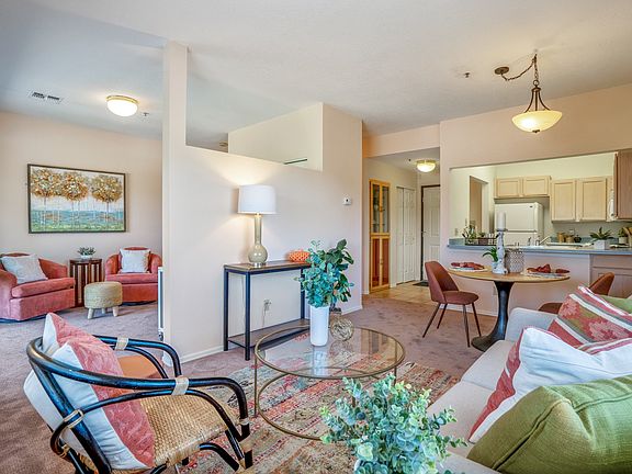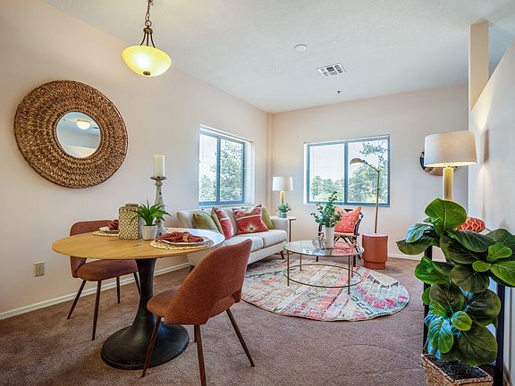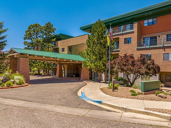 Senior condo, downtown Los Alamos, balcony, open floor plan, move-in ready! Perfectly situated near the senior center, public library, and Fuller Lodge, Oppenheimer Place is a 55+ community designed for modern senior living. This one-bedroom, two-bathroom, end-unit condo is on the second floor, with no adjoining walls, partial views of the Jemez Mountains, and abundant natural light. The kitchen includes an electric range, dishwasher, refrigerator, and microwave. The dining and living areas flow into a unique, flexible floor plan with an extra living space that could serve as an office or be enclosed as a second bedroom. An east-facing balcony provides a nice view of the pine trees, and makes a great spot to enjoy your morning coffee or tea. The primary bedroom also faces east for morning sunlight, and includes two closets and an en suite bathroom. A full guest bathroom and in-unit laundry provide additional convenience, while downstairs there’s a dedicated, covered parking spot. Oppenheimer Place includes elevators, guest parking, and numerous common and recreational areas. The sellers plan to review offers on Tuesday, July 11, so schedule your showing today!