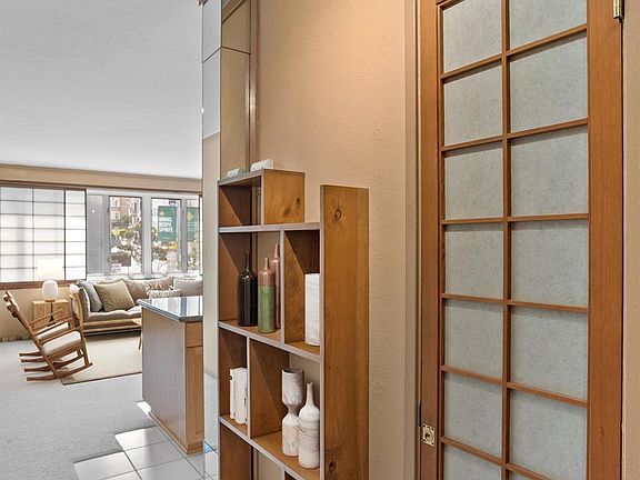 This 1-bedroom corner unit exemplifies a clever utilization of space, accentuated by captivating Japanese-inspired decor. The incorporation of Port Orford Yellow Cedar Shoji Screens not only adds visual appeal but also allows for an abundance of natural light while preserving privacy. The living area offers a generously sized eat-in kitchen with a central island, outfitted with modern amenities. The floor-to-ceiling doorways and tile floor add a clean-airy feel to life with plenty of afternoon sun. Smart storage and easy-exit access in addition to the elevator make this a terrific condominium. The building itself -- Pine Terrace -- is a pet-friendly, concrete-and-steel-constructed high-rise classic, a block from Huntington Park/Grace Cathedral and plenty of restaurants, bars, and shopping. A fun location, with a 99-walkscore, and low HOA dues, parking and storage. You won't want to miss this one!