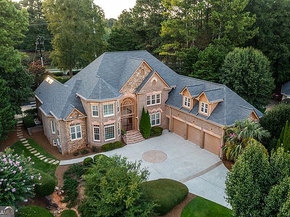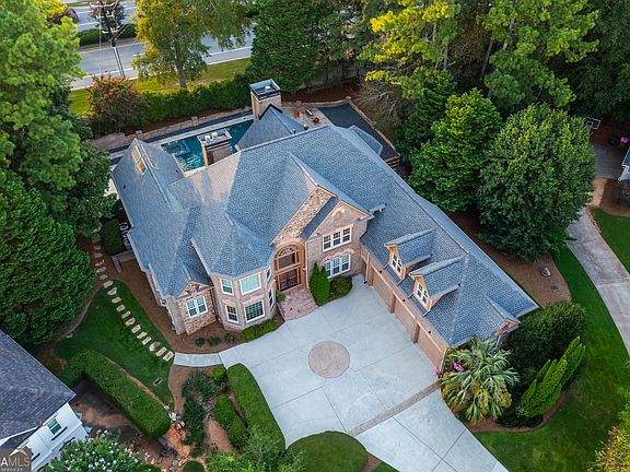 This stunning four-sided brick home is located in the Saint Ives gated country club community in the heart of Johns Creek and is walking distance from Johns Creek High School. The house has completed a three-level major renovation on 8/29/25, featuring a new master bathroom; a new kitchen with all new stainless-steel appliances; all new light fixtures, chandeliers, and recessed lighting throughout the home; newly refinished contemporary hardwoods; and an entirely repainted interior; among numerous other upgrades. The back of the home opens to a beautifully maintained brick patio with an outdoor fireplace and a spacious travertine pool deck, perfect for entertaining, and features a large, heated salt water PebbleTec pool with built-in spa and smartphone controls, as well as an outdoor grilling station with a Brahma Bull natural gas grill, a smoker, and a separate fire pit. The home comprises a total of 7 bedrooms with master suite on main, 6 full bathrooms, 1 half bath, and an exceptionally large, finished daylight basement complete with a kitchenette and full bar. The main level includes a separate formal dining room, a spacious home office, and a two-story renovated foyer with new custom front doors that open to a magnificent family room with one of the two indoor fireplaces. The open layout of this space is ideal for entertaining, as the kitchen space flows into the keeping room and breakfast area, from which there is a full view to the pool in the backyard for when the gathering spills out into the beautifully maintained and recently renovated back patio and pool deck. The main level is bright and bathed in sunlight. The water-based light hardwood flooring extends from the main level to the upper level, which houses four additional bedrooms and bathrooms. The terrace level showcases beautiful travertine marble flooring and includes 2 additional spacious bedrooms, a home theater room, a gym, a family room, a dance studio with lights and mirrors, a bonus room, and a workshop/additional storage area. Every element of the physical plant of the house contains either brand new hardware or has been replaced within the past five years. The roof is two years old with architectural shingles and a 25-year transferrable warranty. A preemptive home inspection was commissioned at the end of the renovation and minor issues detected were all addressed, including installation of a new 70-gallon Energy Star water heater.