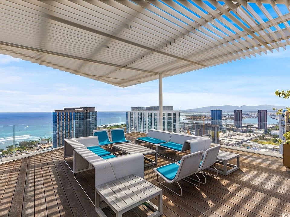 Rarely lived in 2bed-2-bath residence located directly above Ward Village's flagship Whole Foods Market. Offering amazing ocean and city views from every room and steps away from many restaurants, eateries, shops, health and wellness services. This move-in ready unit features Bosch Kitchen appliances, full size washer and dryer, central A/C, custom motorized shades, and 2 tandem parking on the 5th floor. Ae'o is a pet friendly and secure building that boasts resort style amenities including resident-only access to Whole Foods, heated lap pool, jacuzzi, kid's pool, full indoor and outdoor gyms, rooftop sky lounge with breathtaking views, private theater, BBQ areas, and concierge service, entertainment options right at your doorstep and more !!! This heart of urban Honolulu location offers unparalleled convenience and lifestyle opportunities.