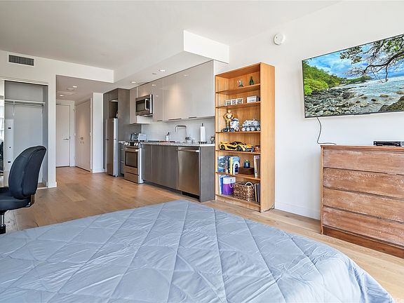 Experience luxury living in one of Honolulu’s most sought-after communities, Ward Village! This move-in-ready studio in Ae’o offers ocean & mountain views through its floor-to-ceiling windows and motorized window shades, revealing a stunning panoramic backdrop. The unit boasts Bosch stainless steel appliances, quartz countertops, hardwood floors & comes with extra storage located conveniently on the same level as the unit's parking stall, close to the elevators. Elevate your daily living with resort-style amenities including 2 pools, jacuzzi, sauna, steam, massage room & a fully equipped gym with its own yoga room, cardio equipment & free weights. That's not all, host parties for all your guests by utilizing the theater, BBQ cabanas, & indoor entertainment lounges, equipped with a full kitchen. Ae’o also offers overnight suites for your guests. As you make your way to the top floor, you’ll find incredible breathtaking views with additional lounge space where you can take in the sunset with your favorite drink. Residents appreciate the direct Whole Foods access from the 2nd floor, making grocery shopping more convenient than ever. It’s more than just living; it's a lifestyle.