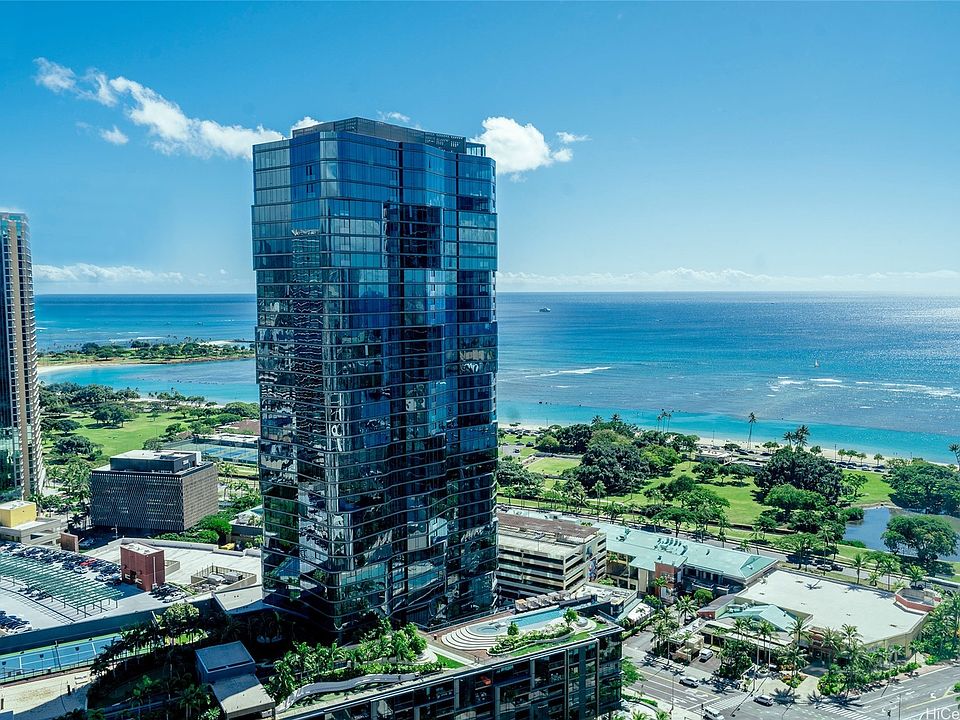 Rarely available ocean-view studio in the luxury Ae'o at Ward Village. This high-floor studio is part of the desirable 10 stack—the only line with stunning Diamond Head and ocean views! Positioned on the preferred side of the building, this high-floor unit is well-maintained and showcases floor-to-ceiling windows, hardwood floors, central AC, and a conveniently located covered parking stall. Ae'o is a pet-friendly community known for its exceptional resort-style amenities, including two pools, an advanced fitness center, rooftop sky terraces, BBQ cabanas, a theater room, guest suites, and direct access to Whole Foods Market. Perfectly situated in the heart of Kaka‘ako, you’re just minutes from Ala Moana Beach Park, premier dining, shopping, and entertainment options. Ideal for both investors and owner-occupants seeking a vibrant, convenient urban lifestyle.