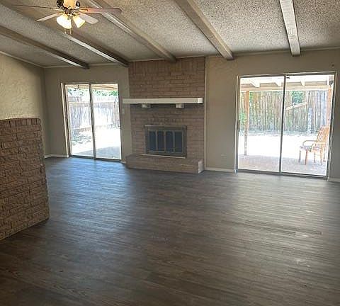Wood-burning fireplaceCovered patioVaulted ceilingWasher and dryer connections