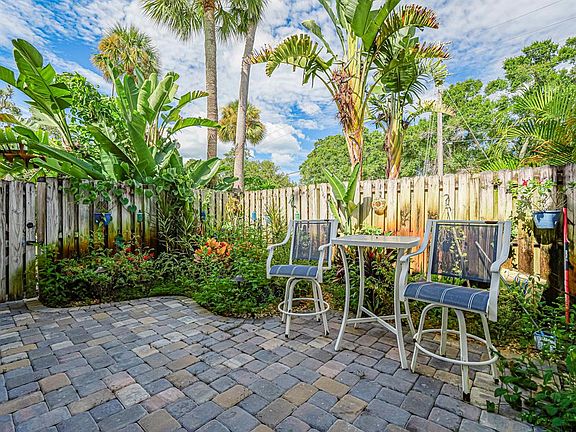 New impact hurricane windows and doors recently installed throughout this gorgeous 2 story furnished townhome with fenced beautifully landscaped whimsical courtyard with new brick pavers. Picturesque and tranquil remodeled corner unit in small enclave of residences minutes to the beaches and river! Sunny kitchen features stainless steel appliances, island breakfast bar, and spacious dining area. Washer and dryer in unit. Bright and open layout. 2 bedrooms and 2 full baths. Tile and hardwood flooring. Elegant living at its best!