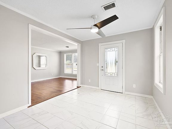 Welcome to your dream retreat in South Pensacola! This beautifully renovated cottage exudes charm and modern elegance and only 20 minutes from Pensacola Beach and less than 10 minutes from NAS Pensacola. Nestled on a corner lot, this 3-bedroom, 1-bathroom home is complete with a garage, ample parking, and a spacious utility room with indoor laundry hookups. Entertain with ease in the spacious living areas, which feature NEW granite countertops, NEW cabinets, all NEW stainless steel appliances (including a built-in microwave, electric stove, dishwasher, and refrigerator), and a large pantry with built-in shelving. Plus, rest assured knowing that the roof and HVAC were replaced in 2022, ensuring peace of mind and comfort for years to come. Host gatherings with loved ones on the covered back patio, where evenings are best spent cozied up next to the fire pit. Don't miss your chance to make this South Pensacola sanctuary your own. Schedule your private showing today!