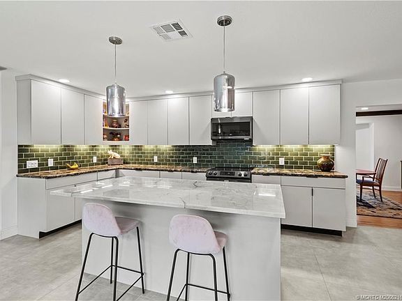 Stunning & custom 5BR, 4.5BΑ рοol home οn .76 aсre, just 10 min from the beаch & wаterfront dining. Perfect for multi-family living, the split floor plan offers comfort & privacy. Inside boasts oak wood, terrazzo & Brazilian red cherry floors, cypress ceilings, crown molding, recessed lighting, & an updated kitchen w/ granite & stainless. Custom details & craftsmanship shine throughout every room. Outdoors, enjoy a lagoon-style pool w/ diving board, beach area, summer kitchen & cabana bath. Impact glass windows, metal roof, 2 new ACs, 2 laundry rooms, 3-car garage, wood-burning fireplace, 2 new water heaters & flagstone patio complete this one-of-a-kind retreat. A truly beautiful home designed for both everyday living & unforgettable entertaining. This exceptional property blends elegance & comfort, offering a rare opportunity to own a spacious, private haven in a prime location.