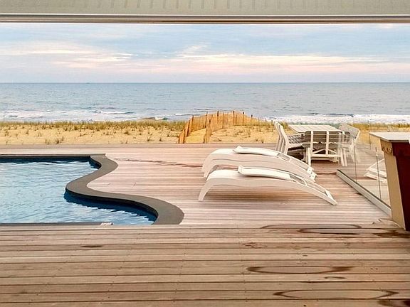This is a weekly rental. The 20,000 is an off season rate. See VRLBI listing #1123 for more information. Breathtaking, majestic and luxurious are just a few words to describe this exquisite nautical getaway, located in LEHYC s most coveted area. The southern end of Atlantic Ave. is where privacy and serenity co-exist and it is just a short walk or bike ride to all that Beach Haven has to offer: casual & fine dining, island shops, museums, live theatre and more. This property is hands down, the most spectacular oceanfront with almost every room enjoying distinct waterfront vistas beyond walls of glass. The superbly located horizon swimming pool feels like it's part of the home, when you walk through the interior you get a constant glimpse of the crystal blue water from the living areas. It gets better the pool/entertainment room off the main living area offers state of the art bifold doors that discreetly fold away to maximize the outdoor space and full-width Atlantic views. The pool living area flows to the impressive entertainer's deck complete with spa, mosaic accented pool, and all-glass rails, so you can delight in the sight and sound of the crashing waves as the backdrop. The living room, dining room, breakfast room and kitchen offer an open-plan living area, adorned with furnishings in airy white and nautical tones that are framed with - furniture quality wall and ceiling moldings. The kitchen is a gourmet chefs delight with thick Carrara quarts counters housing a farmhouse sink, 6 burner + grill Wolf stove with pot filler, 2 dishwashers (the best on the market), a sub-zero refrigerator, and a breakfast bar that seats 4. The top floor master is included in the 40k in-season rental and covers the north elevation. The graciously sized master suite boasts paneled architecturally detailed ceilings, enormous windows & glass sliders. Pass by the generous closets to the master bathroom, where the double vanity is adorned with more exquisite marble and the step-in rain room gleams behind frame-free glass enclosures. The master bath also offers a one-of-a-kind indoor/outdoor shower accented with pond stone, to enjoy the outdoors - with views of the ocean as you bathe. Down a level, another family room awaits with a covered deck and more spectacular views. Three ensuites, (two offering outdoor access to the pool and decks), two bunk rooms (share a full bath), plus a half bath that offers access to the deck and pool outside - complete this fabulous space. This will be the vacation of a lifetime, the sun, sand, and sea are all at the doorstep of 1001 S. Atlantic Ave. When you arrive the sparkling blue ocean views and beautiful beach areas greet you at this sought after retreat. Go for a dip in the pool or jump into the heated hot tub, and begin your vacation today. This is a weekly rental. See VRLBI listing #1123 for more information.