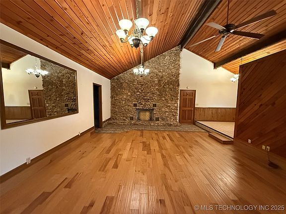 Custom Built Spacious and Well Maintained Home. This 2 Bedroom (lots of possibilities for a 3 bedroom home) 3 Bath Home has Vaulted Ceiling Formal Living w/floor to Ceiling Stone Fireplace, Lovely Kitchen and Dining Area w/tiled flooring, breakfast bar, appliances & plenty of cabinet space. Primary Bedroom and full bath, Guest Bedroom, Large Guest Bath w/vanity, whirlpool tub and shower, Additional Guest Bath w/shower, Extra Spacious Vaulted Ceiling Family Room w/floor to ceiling stone fireplace, bar area w/fridge and storage, wall of windows that overlooks covered deck and privacy fenced backyard. Mechanics Room, Nice Laundry Room w/washer & dryer, The home has an attached garage w/saferoom, mature trees, and so much more. This is a beautiful home. Wait until you see the workshops! One is approximately 1900 sq ft per court house records, 1/2 bath, 2 Overhead Doors, Office area, Cedar Closet, Upper Storage, Electric & Water, AND Detached Garage approx 1100 sq ft per court house records, w/overhead door and electric. This home sits on extra big lots, one is chain linked fenced with even more possiblities. Great neighborhood! Let us show you this home.
