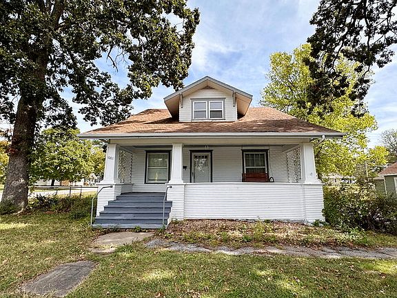 Attractive Craftsman Style Home for Sale in El Dorado Springs, MO. For Sale is a spacious and affordable 3-bedroom, 1-bathroom home on Main Street in El Dorado Springs, Missouri. At 1,551 sq feet, this home offers large rooms and 2 living rooms (one upstairs and one downstairs.) The main level features the living room, a large dining room with bench window seat, the kitchen, bathroom, utility room, and one bedroom. Upstairs you'll find the second living room, 2 bedrooms both featuring large walk-in closets, and built-in storage in the hallway. The entire home has brand new carpet that has just been installed. The covered front porch is definitely a highlight of the property featuring a porch swing and plenty of space to relax and watch the world go by. The paved driveway leads to the 30'x30' garage/outbuilding giving you excellent parking or hobby space. Bonuses are a cellar that allows shelter from storms for peace of mind and a fenced backyard. All this is available on a corner lot on historic Main Street, El Dorado Springs, MO. Call soon to schedule your showing! Directions: From Hwy 54 in El Dorado Springs, go north on Main Street (Hwy 82) to home on right (East) side of road. Watch for signs.