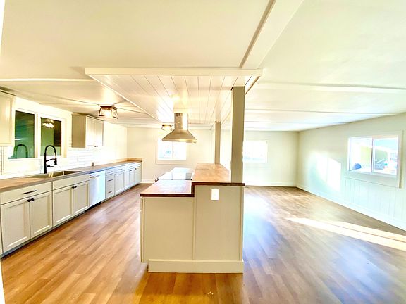 Beautiful total remolded from top to bottom. Move in ready. Light and bright open floor plan with brand new windows, deck, water heater and pex piping. Kitchen includes new island, appliances, cabinets, butcher block counter tops, sink and light fixtures. Bathroom updated with new tile, cabinetry, mirror and toilet. New interior and exterior paint. Newer 30 year roof. Insulated garage door. Fenced back yard on corner lot. 55+ park, close to senior center and walking trails. $529.00 monthly space rent incudes water, garage, sewer, snow and yard debris removal plus use of clubhouse with full kitchen and pool tables. Owner occupy only. NO SUBLEASE. All occupants need park approval with credit and background check. Must have income of 3 times space rent. Small dogs allowed.