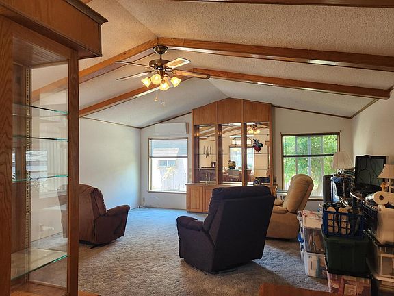 Welcome home to Suntree Village, one of Bend's finest 55+ parks. This 1539 sq ft home has 3 bedrooms and 2 baths, home is well kept and move in ready, with vaulted ceilings and built-ins in the living and dining area, huge kitchen with island/breakfast bar, lots of cabinets and counterspace, large pantry and all appliances are included. Large bedrooms with large closets and good separation, large utility room with sink, washer and dryer included. 2-car garage with storage and workshop, garden room and nice backyard. All in walking distance to The Larkspur Community Center where you can swim and exercise. Space rent is $620.00 mo. includes water, sewer, trash, owner occupied only, must be approved to Suntree Village. Make an appointment to view today!