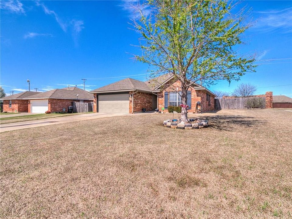 Beautiful move-in ready Home in Moore school district! This 3 bedroom Home opens to large living room with fireplace. The kitchen includes stainless appliances, a breakfast bar, and a pantry. The Master Suite includes double vanities and a large walk-in closet. The fenced backyard is perfect for entertaining with a large covered patio. Home includes inside utility room and security system as well. Just minutes from shopping, schools, and the major interstates--schedule your showing today!