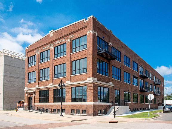 Brick buildingLarge ceiling heightsChic condosUnique floor plan stylesCustom windowsSpacious kitchenViews of downtown