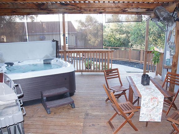 Quartz countertopsStainless steel appliancesGleaming hardwood floorsOutdoor fansLarge covered deckExtended outdoor living spaceRelaxing hot tub