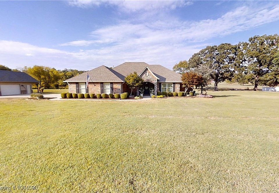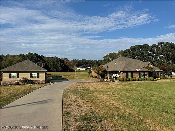 Rare Find!! Imagine living in your own park. This gorgeous home sits on 3.43 acres with a stocked pond and grounds that look like a golf course. Or if the mood strikes you, you have enough room for a baseball game! Out of the city, beautiful estate size lots but still so handy to Fort Smith. Spacious open living area with huge kitchen and family room windowscaped to enjoy your beautiful private yard. Features central vac, sprinkler sys, safe room along with a 30 x 24 insulated flex space with new HVAC! On your own private covered, porch enjoy sunsets over the pond or cool your feet off the dock. New roof in 2022 new Trane HVAC 2025. A true gem!