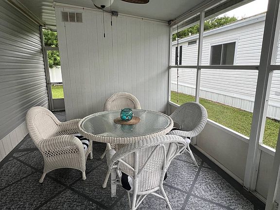 Step into your dream Florida retreat in Paradise Island's energetic 55+ community-offering this spacious two-bedroom, two-bath home displaying 1,040 square feet of inviting living space within the heart of the Greater Tampa Bay area. The community is near beaches, golf courses, shopping centers, and malls, providing a range of recreational and entertainment options. A monthly lot rent of $852.94 includes water, sewer, garbage collection, lawn maintenance, cable, and internet services. Community features include a billiards and pool room, heated swimming pool and spa, hot tub, bocce ball, shuffleboard courts, and horseshoe pits. Pet lovers rejoice-with the generous pet policy, two pets up to 40 lbs. are welcome here! INTERIOR: This lovely Jacobson model home, fully furnished, features an inviting open floor plan and has already undergone many high-end updates. In admirable condition, it features durable wallboard and laminate flooring throughout most of the home. Major improvements include all-new plumbing in 2023, replacement windows and doors in 2021, and a new central heat and air system in 2025, along with ceiling fans that add comfort throughout the home, ensuring efficiency for years to come. The eat-in kitchen is neat as a pin, equipped with all essential appliances, including a dishwasher and disposal. The home also offers a charming dining room, ideal for everyday meals yet versatile enough to provide extra seating when needed for gatherings. Just beyond, the generous living room creates a warm and welcoming setting, perfect for both relaxation and entertaining guests. The roomy master suite features two closets(the dresser in this room does not stay with the home) and an updated en-suite bath, complete with a new vanity and new toilet, as well as a practical walk-in shower that highlights dual seats. A welcoming guest bedroom has tile flooring and is perfect for hosting friends or family, with easy access to the hall bath featuring a tub-shower combination. EXTERIOR: At first sight, this inviting, vinyl-sided home is enhanced by lovely landscaping, a carport, and a decorative driveway that leads to the lowered screened room-an ideal spot for enjoying fun evenings outdoors. A roof-over replaced in 2019 adds peace of mind, while the fenced yard creates a perfect spot for pets. Additional updates include a new water heater in 2023 and a water softener for added comfort. You'll find a handy washer and dryer in the shed on the property. The shed can also work double time for extra storage! With thoughtful features inside and out, this property is being offered at just $69,900-absolutely priced to sell!