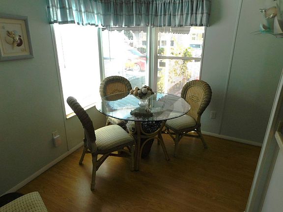 LOCATION! LOCATION! LOCATION! COMES MOSTLY FURNISHED** I am starting with a disclaimer. This home is a double wide with 2 sides. One is 14x35=490 ft., the other side is 14x52=728ft for a total of approximately 1,218 sq. ft., which allows for a wider driveway. The listing shows it as a 28x52. We can't put in 28 x 35/52, so I listed it with the larger number. The titles have the exact measurements of just the mobile, it does not include the Florida room. This home has a unique layout with a split bedroom plan. The Guest bedroom is at the front and the Master bedroom at the back of the home. Here are a few items the seller has added to the house. 1. 3 ton AC installed in 2022 and new duct work in 2023 2. It has a TPO roof over it 3. Interior has been painted 4. Corion countertops in the kitchen 5. Newer washer and dryer 6. Decorative driveway 7. New front door KITCHEN As you enter the home the kitchen and breakfast nook are tucked to the right. This u-shaped kitchen has all the amenities at your fingertips. It also has lots of counter space and cabinets. The breakfast nook has 3 windows for plenty of sunlight to pass through the room. Also part of the kitchen there is a passthrough into the living room which allows you to carry on conversations, pass food thru for the dining room and there are bar stools to sit on. DINING ROOM The dining room has a free standing China cabinet, seating at the table for up to 6 and is open to the living room. LIVING ROOM This open space connects to the dining room, the master suite, the guest bedroom/bath, and the Florida room. GUEST BEDROOM As mentioned above this room is at the front of the home. Plenty of space, full closet and privacy. LAUNDRY CLOSET/ GUEST BATHROOM There is a short corridor to the guest bedroom that behind the louvered doors to the left is the location of the washer and dryer. Across the corridor is the guest bathroom. This has the tub/shower combo, and vanity. MASTER BEDROOM/ MASTER BATHROOM What a great space. You have room for a king bedroom set, it has access to the Florida room through sliding glass doors, a walk-in closet and your own ensuite. The master bath has a large vanity, and a walk-in shower. RAISED FLORIDA ROOM This will most likely be your favorite spot to hang out in the morning drinking your coffee. You have a front row seat to look out over Webster's Pond to watch all the wildlife that comes to this pond. There are sliding glass doors from the master and sliding doors from the living room. The rear door will take you out to the fenced in patio and the shed. PATIO/ SHED Across the back of the home is an outdoor sanctuary. As you exit the home you step on a paver patio that is fenced in. Another great location overlooking Webster's Pond. The shed is also part of this space. DON'T MISS THE OPPORTUNITY TO OWN THIS HOME As a non-share owner, you are entitled to the following amenities: • UNLIMITED WATER & SEWER • 2 TIMES WEEKLY GARBAGE PICKUP • USPS HOME DELIVERY • YARD CARE (MOW, EDGE, BLOWN OFF AREAS) • SPECTRUM CABLE & WIFI SERVICE FOR ONLY $852.94** PER MONTH STARTING January 1, 2026, THE MONTHLY FEE WILL BE $ 857.36 Other amenities include large, heated pool and hot tub that is available 7 days a week. There is also a plethora of clubs that you can join if you desire. This is a well-established and maintained park. Please call our office to set up an appointment with one of the Agents ** The information provided herein is believed to be accurate, but is not guaranteed** ** Seller will provide a list of furniture they will be taking. They will also be taking personal items.