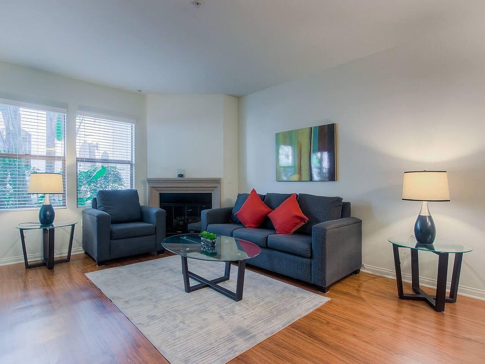 Feel at home in this cozy courtyard-facing apartment located in the heart of Westwood Village, one of LA's premier village centers on the trendy Westside. This Mediterranean-style community is just steps away from vibrant shopping, cultural, and entertainment amenities. The apartment is within walking distance to the UCLA campus and Medical Center, and conveniently close to Beverly Hills, Santa Monica, and Century City. This apartment offers a carpet-free living space and is part of a community that boasts full amenities. Enjoy access to a large fitness center equipped with a full range of weight machines, free weights, and cardio machines, as well as a yoga studio. The indoor spa facilities include men's and women's whirlpool, steam, and sauna rooms. The recently renovated pool is long enough for laps and surrounded by plenty of sun lounge chairs. Pets are welcome with a fee of $250 paid upon move-in with pre-approval. Westwood Village/UCLA is a prime location on LA's trendy Westside, offering a unique urban experience where you can walk to everything you need without a car. The building features a Trader Joe's Supermarket, Rite Aid Pharmacy, and a popular high-end coffee cafe. A Target is directly opposite, and you're within walking distance to supermarkets, cafes, restaurants, and shops. The apartment is located in a large building in the center of Westwood Village, which is relatively quiet due to slow street traffic in the area. A minimum stay of 30 nights is required.