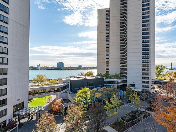 Experience high-rise living on the Detroit River in this updated 1-bedroom, 1-bathroom condo offering stunning river views right from your living room. The modern kitchen features stainless steel appliances and granite countertops, with the convenience of an in-unit washer and dryer. Enjoy a full suite of luxury amenities including an indoor, all-seasons heated pool and spa, a 24-hour fitness center, tennis and volleyball courts, a dog park, children’s playground, and beautifully landscaped outdoor patios with grilling stations. Covered garage parking with secure entry provides peace of mind, while gated 24/7 security and controlled access ensure comfort and privacy. Residents have skywalk access to the Detroit People Mover’s West Riverfront station and the scenic RiverWalk. On-site conveniences include a market, salon, and dry cleaner—everything you need right at your doorstep.