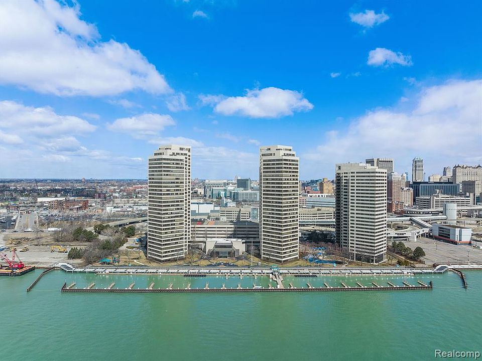 Luxury living in the riverfront condo complex in a gated community! This beautiful 2 bedroom 2 bath condo is located on the covenanted 8th floor, with amazing views of the Detroit river from both the living room and bedroom. This condo features custom cherry cabinets, stainless steel appliances, hardwood floors, and in-unit laundry. Access to the river walk, marina, tennis courts, on site market, and parking space included in amenities. For a small fee the pool and fitness center is included. Close proximity to stadiums, theaters, campus martius, Detroit Medical Center, Wayne State University, Henry Ford Hospital, and many bars and restaurants. Next door to the soon to be built Wilson Centennial Park - to open this fall! A 22 acre park. The park will feature a play garden, basketball court, a water garden, green space, and walking paths. No pets!