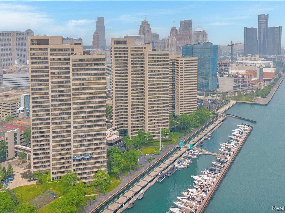 Your waterfront retreat awaits, right in the heart of a booming downtown! Step right in and be greeted by an amazing view of the Detroit River! This beautifully decorate and updated condo features in-unit laundry, hardwood flooring, a primary suite with walk-in closet, full bath and spectacular views of the Detroit River. Enjoy all the amenities Riverfront Towers has to offer with a parking structure, tennis courts, dog park, indoor pool, fitness center, fire pit, picnic shelter, convenience store and on-site property management. Step out of the complex and take the Detroit People Mover to any destination downtown, or the scenic Detroit Riverwalk to the adjacent, all new, Ralph Wilson Park set to open later this year! You can have it all!