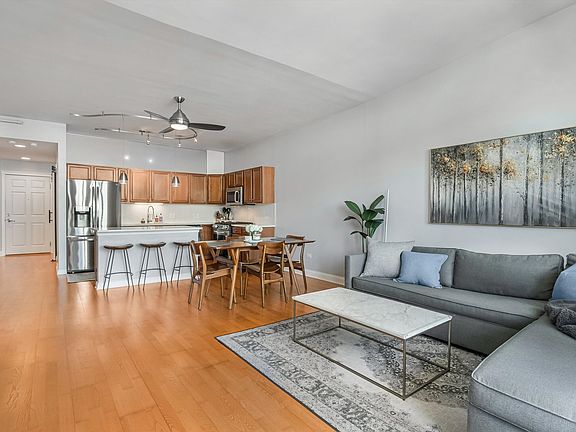 Welcome home to your new 2 bedroom, 2 bathroom condo! Bright, quiet, and filled with natural light, this top-floor condo offers high ceilings, a fireplace, and floor-to-ceiling windows framing stunning skyline views. The open living space flows seamlessly into the updated kitchen with shaker cabinetry, quartz countertops, stylish backsplash, and newer stainless steel appliances. The spacious primary suite comfortably accommodates a king bed plus a home office or workout area. The en-suite bath features a walk-in shower and dual vanities. A fully enclosed second bedroom provides flexibility for a guest room, office, or nursery. Step outside to your private covered balcony, perfect for relaxing, taking in the views at the end of the day, or grilling and entertaining. Enjoy full-amenity living at its finest with a large fitness center, common area sun deck with picnic tables, and an on-site Starbucks. Heated garage parking is included in the price. Unbeatable location convenient to transit, with the 20 bus stop right outside your front door, and just steps away from world-class dining, shopping and parks in West Loop and Fulton Market. Schedule your tour today!