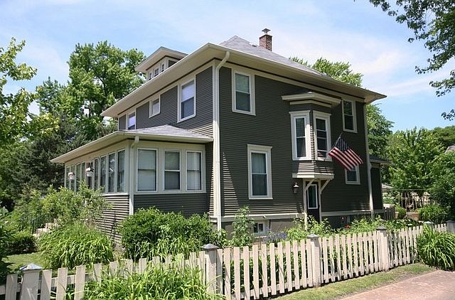 Beautifully renovated American 4-Square is hard to leave, but owners are transferring after 10 years of pouring heart and soul into their home. On the 1st floor, renovated chef''s kitchen with high-end commercial-grade appliances, quarter-sawn oak, chestnut cabinets that almost hit the 10-foot ceiling on 3 sides, soapstone countertops, huge prep/eating area that seats 5, and newer hardwood floors-just part of the extensive list of things updated. New mudroom, full bath/shower, huge dining room/living room combo with masonry fireplace. The enclosed front porch has heat and air conditioning; can be used as a family room. 2nd floor has elegant extra-wide hall connecting the 4 corner bedrooms with large closets, a full bath, and stairway to 3rd-level unfinished attic. The backyard has nice privacy, lovely gardens, pathways, open and sheltered patio areas. Recently painted exterior and fence, 2-car garage, big driveway, and unfinished basement. Seller moving overseas - motivated to sell