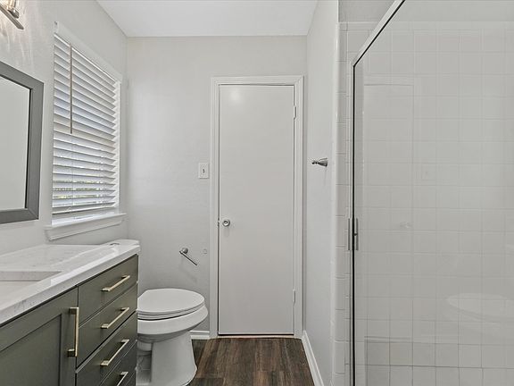 Check out this updated 3-bedroom, 2.5-bathroom townhome-style condo. CORNER UNIT! Fresh paint, new carpet, white faux wood blinds create a bright and welcoming atmosphere. The spacious living area boasts a fireplace with open views from the kitchen and dining room. On the main floor you will also find a bedroom and powder room that adds convenience for guests. The kitchen showcases granite countertops, electric range-oven, new dishwasher, and microwave. Upstairs, you'll find two generously sized bedrooms, both with en-suite bathrooms and walk-in closets. Enjoy the outdoors in your own private, fenced backyard perfect for barbecues, gardening, or unwinding after a busy day. The community amenities include a pool and a clubhouse, offering a resort-like experience just steps away from your front door. This townhome-style condo offers the best of both worlds: a peaceful, private retreat with access to wonderful community amenities and easy access to 635 and I-30. Don't miss out on this fantastic opportunity schedule your showing today!